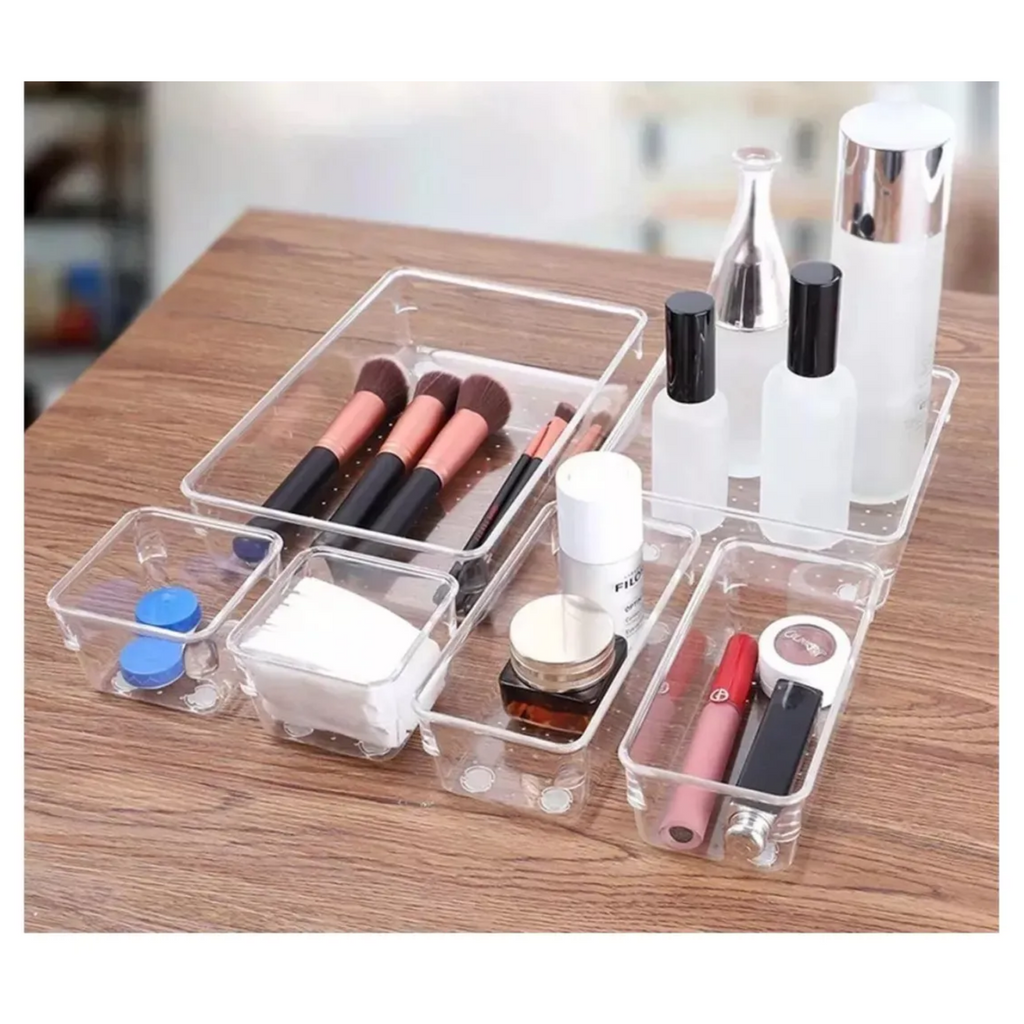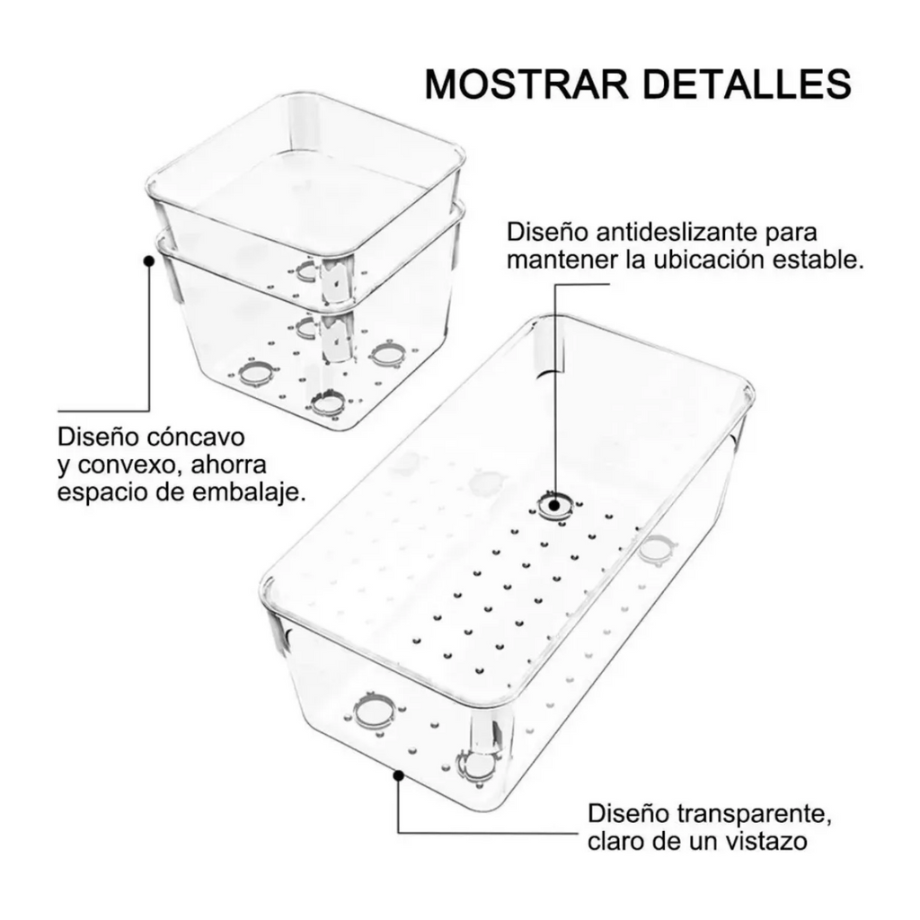 Fabricados con plástico de alta calidad, los organizadores son duraderos, resistentes y fáciles de limpiar. Además, cuentan con almohadillas de silicona antideslizantes que aseguran que cada caja permanezca en su lugar, incluso al abrir o cerrar los cajones. Una solución práctica y elegante para optimizar el almacenamiento de tu hogar y mantener tu espacio libre de desorden.