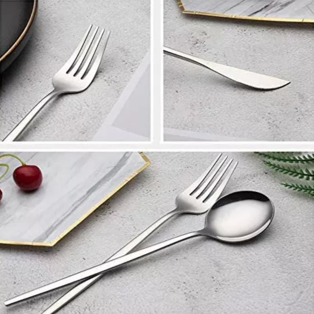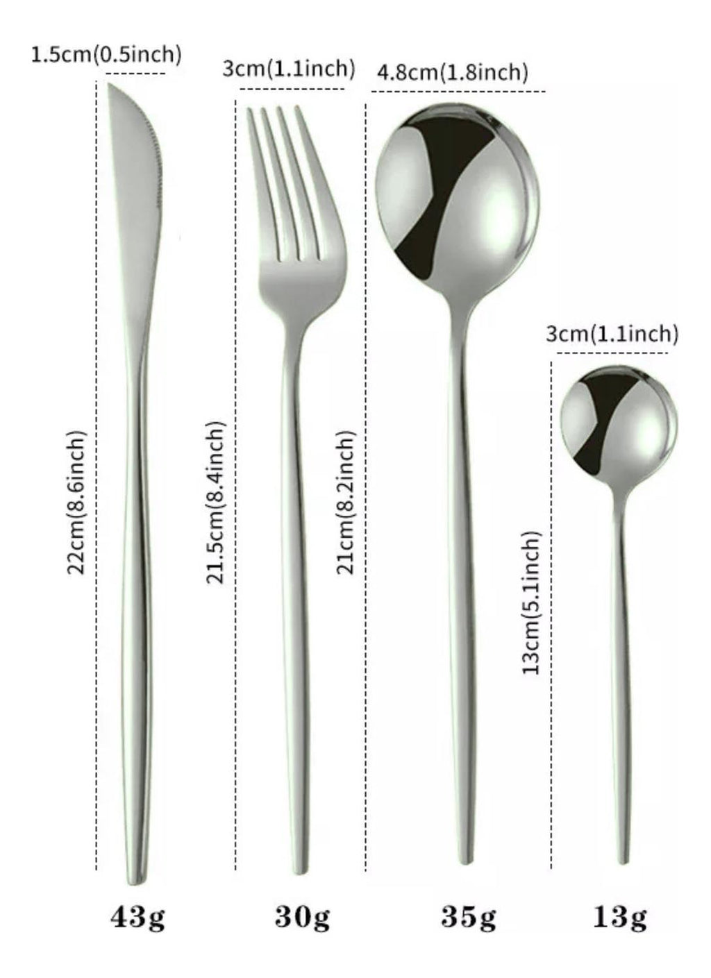 Material de acero inoxidable, resistente y duradero. Nuestra vajilla está hecha de acero inoxidable 401 sólido de alta calidad, duradero, a prueba de óxido, no tóxico y no peligroso, libre de níquel. En comparación con el acero inoxidable ordinario, tiene mayor resistencia a la oxidación, resistencia a altas temperaturas y resistencia a la corrosión, alta tenacidad, no es fácil de romper o doblar. Cumple con la higiene de la vajilla, se puede utilizar con confianza. Variedad completa, adecuado para uso familiar 24 piezas de vajilla incluyendo: 6 cuchillos, 6 tenedores, 6 cucharas, 6 cucharillas. Imprescindible para comidas y reuniones familiares, y una cocina totalmente equipada. Permite disfrutar del momento de una suntuosa cena en familia o con amigos. Apariencia sencilla, bonito color, diseño clásico, aspecto sencillo y limpio, dorado, negro y rojo, elegante y noble. Al mismo tiempo, el color siempre puede mantener el color dorado, no opaco y no se desvanecen. Fácil de limpiar Fácil de usar fácil de limpiar, no es fácil de pegar residuos de alimentos, también disponible para la limpieza del lavavajillas, enjuague con detergente neutro, no utilice álcali fuerte o productos químicos oxidantes fuertes.Adecuado para todas las ocasiones Suficientemente elegante para que coincida con toda su vajilla existente, adecuado para familias, fiestas, hoteles, restaurantes, regalos, cumpleaños, viajes de campamento, también un regalo para familiares y amigos. Medidas: 24 cm. Material: Acero Inoxidable. Cantidad: 24 Piezas. Apto para Lavavajillas: Si. Color: Plateado. Incluye: -6 Cucharas para alimentos. -6 Cuchillos. -6 Tenedores. -6 Cuchara de té. Producto 100% Recomendado. Garantia de 6 Meses.