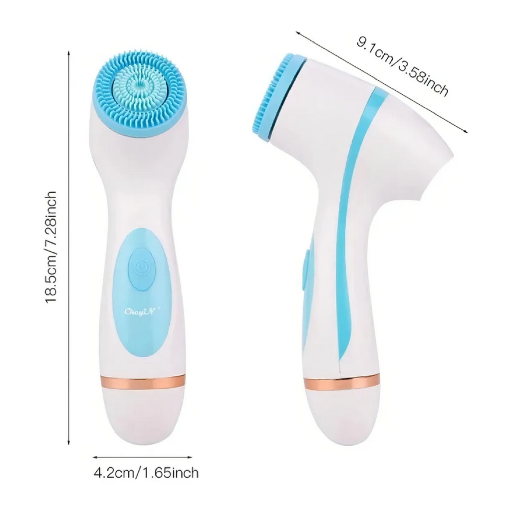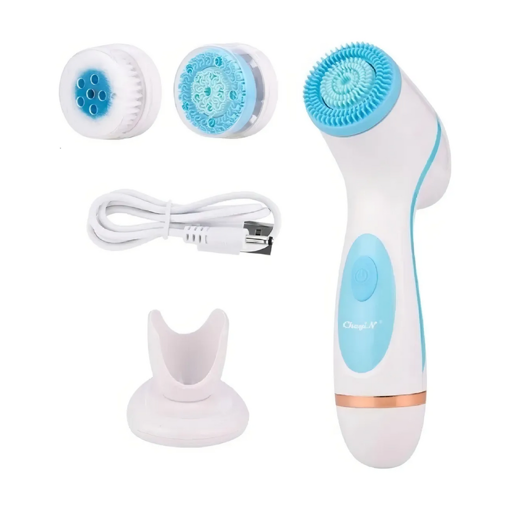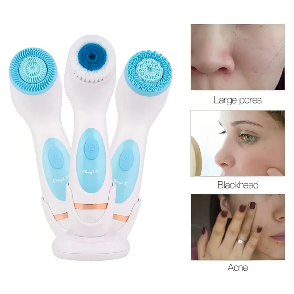 Cepillo de limpieza facial eléctrico 3 en 1 con cabezales intercambiables para limpieza profunda, exfoliación y masaje facial. Recargable, resistente al agua y diseñado para eliminar suciedad, residuos de maquillaje y grasa, al mismo tiempo que estimula la circulación y ayuda a la absorción de cremas y lociones. Perfecto para un cuidado facial completo y práctico.