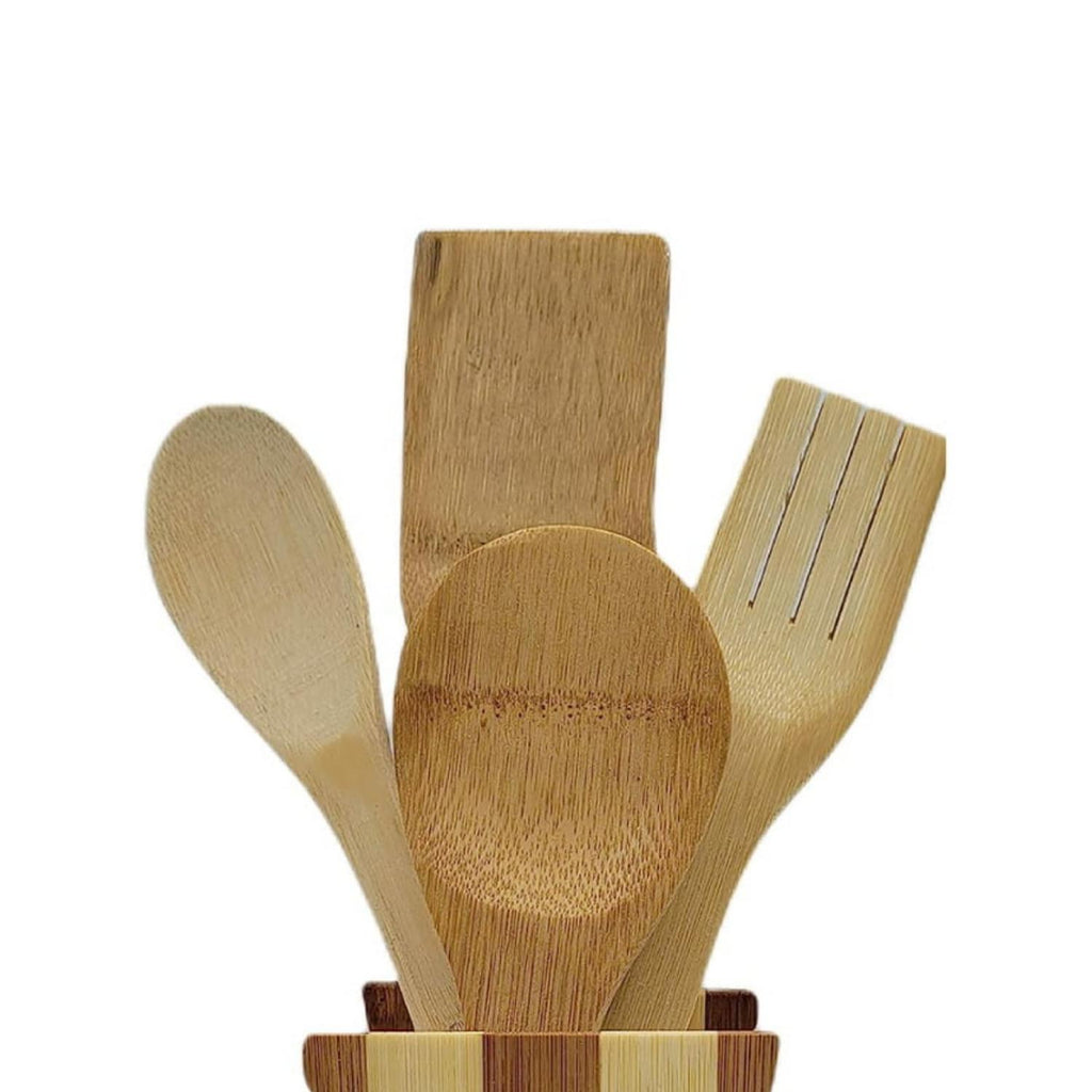 Esta hermoso set de de utensilios esta hecho de madera resistente, son perfectos para mezclar, servir y cocinar. ¡Perfectos para a tu cocina! Realiza todas tus preparaciones de manera rápida, simple y segura con este completo set, su diseño dará un toque natural a tu cocina. Set incluye Tenedor, Cuchara Pequeña, Cuchara Grande, Paleta y Contenedor de Madera. Dimensiones: Tenedor: 28,3 cms de largo / Cuchara Pequeña: 27,6 cms de largo / Paleta: 30 cms de largo / Cuchara Grande: 23 cms de largo. Material: Madera. Color: Café. Producto 100% recomendado. Garantia Legal de 6 meses.