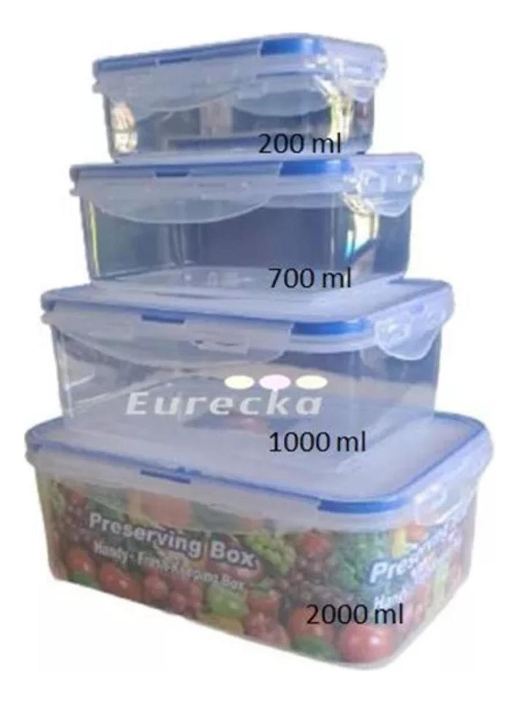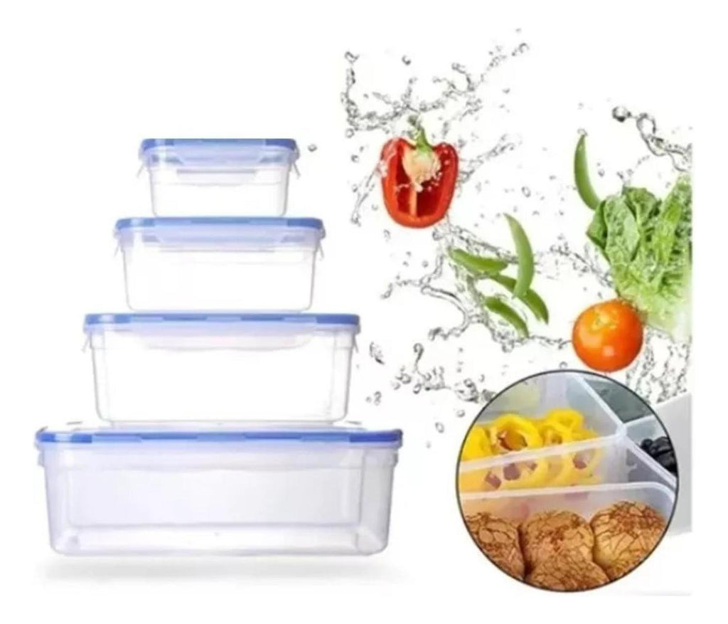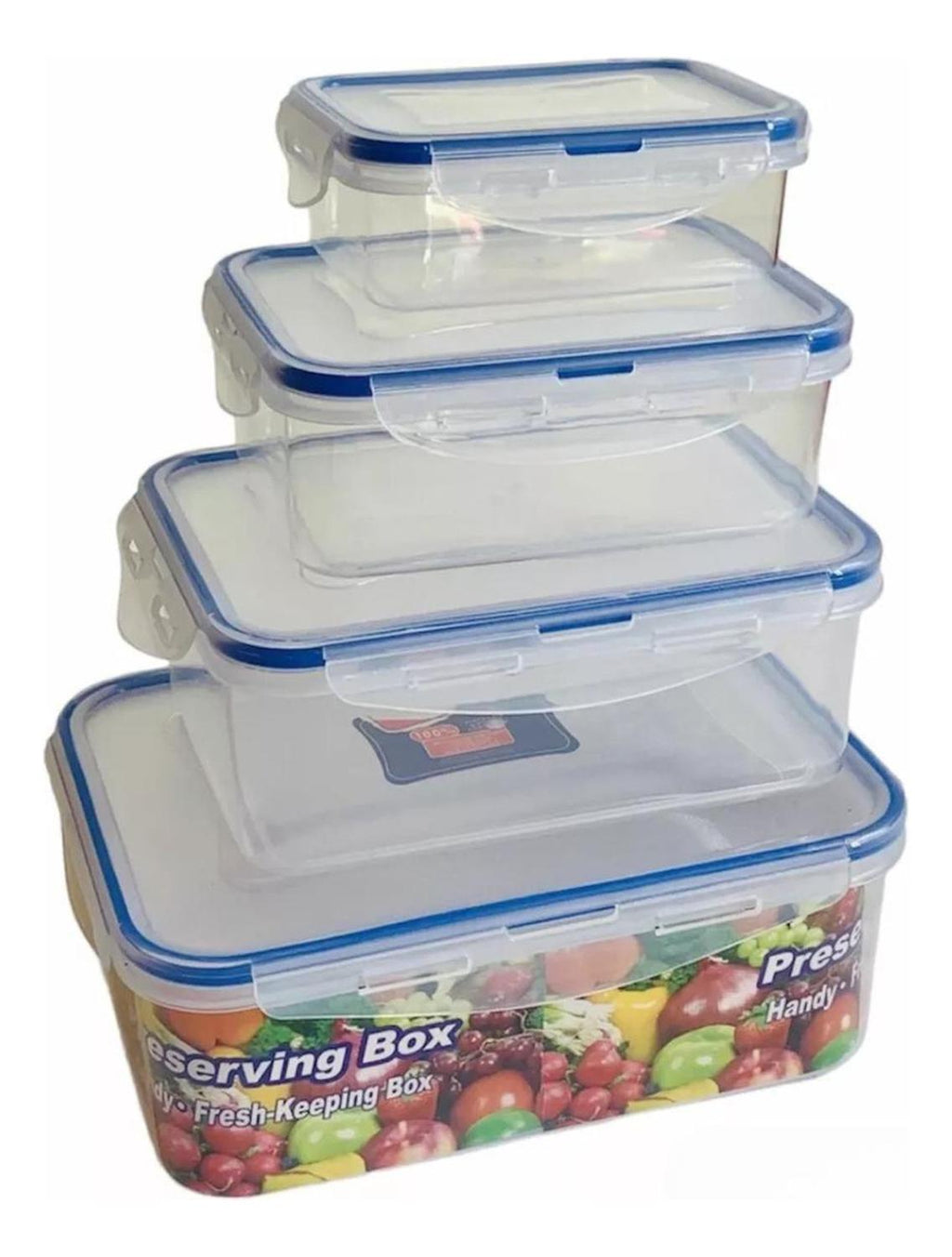Set 4 Tupper Herméticos Alimentos Plástico Azul