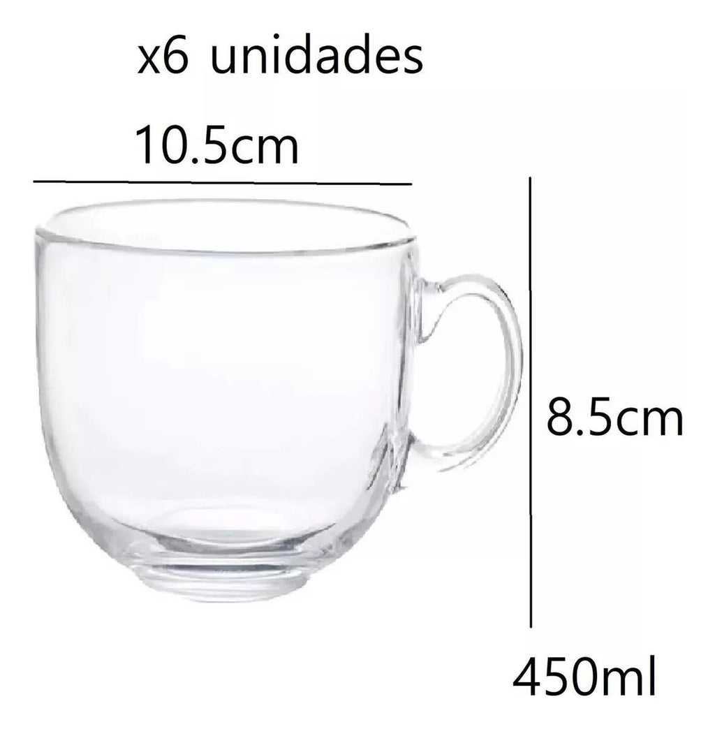 Saludable: Nuestras tazas de café tienen un borde suave para eliminar las molestias de los labios, sin BPA, sin plomo, material de calidad para pies. La mejor opción para restaurantes, catering y cafeterías, grandes regalos para muchas ocasiones, para beber casi todo tipo de café, té, sopas, mantener caliente y frío Excelente calidad: Hecho de cristal duradero de alta calidad, ideal para el uso diario, material muy grueso. Perfectamente equilibrado para resistir vuelcos y derrames. Diseño simple de boca ancha y cristal transparente y templado que combina con todo fácilmente. Fácil de usar, fácil de limpiar: 100% apto para lavavajillas, frigorífico y microondasJuego de 6 tazas de cristal templado transparente con asa para café, té, sopa, cereales. Medidas: Alto 9cm x Ancho 8.5cm. Capacidad: 450 ml Material: Cristal Color: Transparente. Producto 100% recomendado. Garantía Legal de 6 meses.