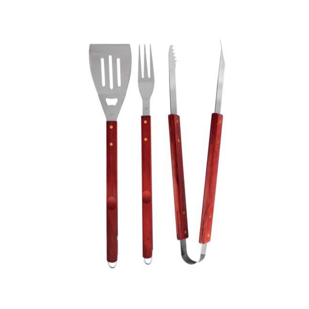 Prepara asados con estilo y precisión con este juego de 3 utensilios para parrilla. Fabricados en acero inoxidable de alta resistencia y con mangos de madera, estos utensilios combinan durabilidad, seguridad y comodidad. Ideales para cocinar al aire libre, te permitirán manipular los alimentos con total control y confianza. Un set esencial para los amantes de la parrilla.
