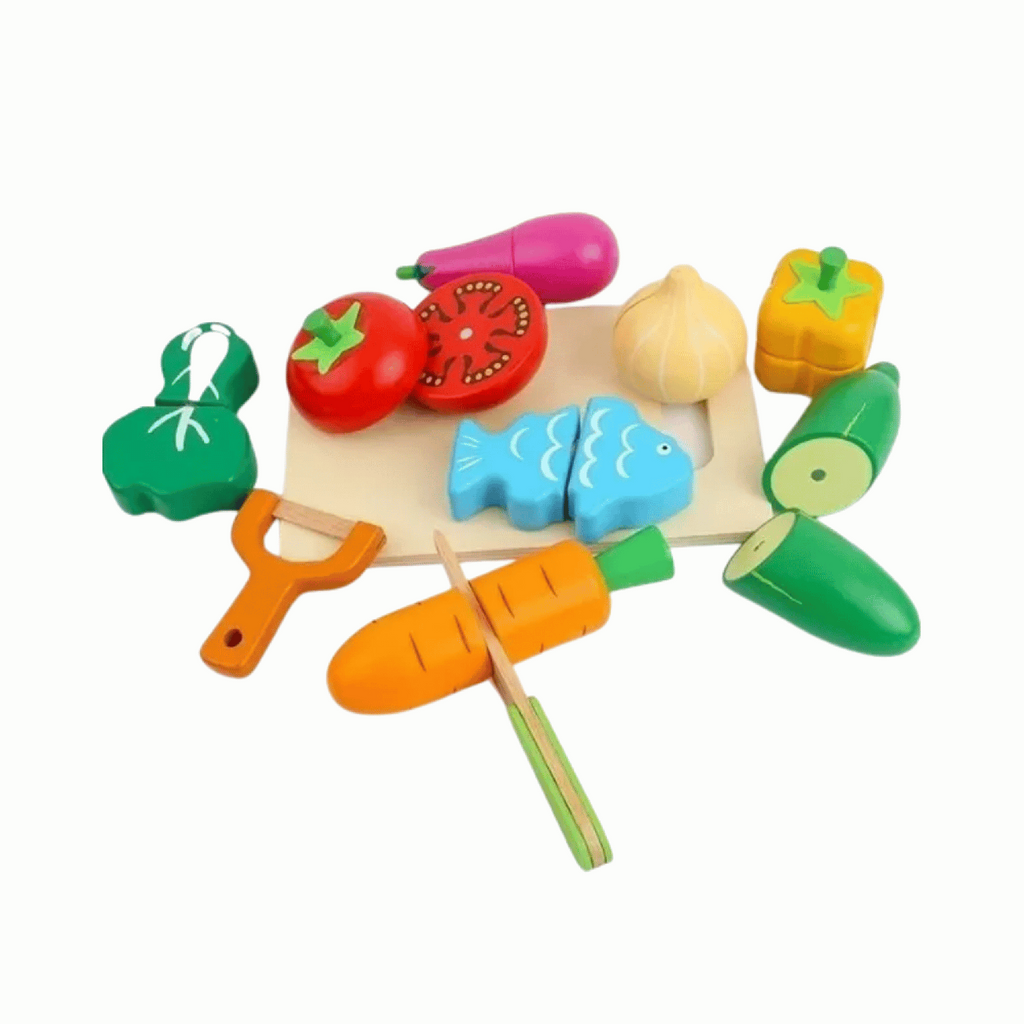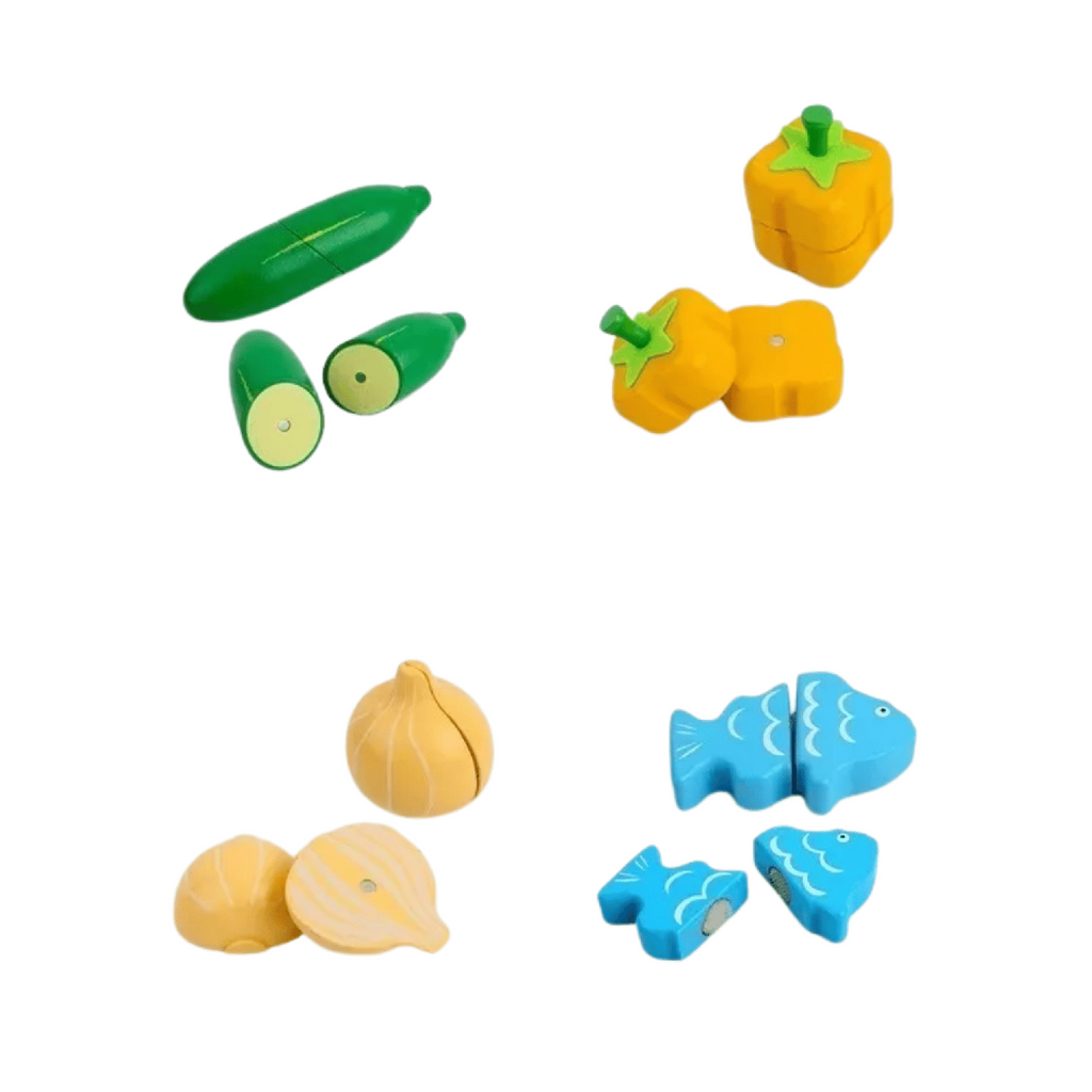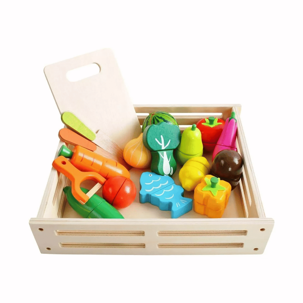 Inspira la creatividad y la motricidad fina de los niños con este Set Corta Frutas y Verduras de Madera Montessori, diseñado especialmente para los pequeños amantes de la cocina. Con 17 piezas coloridas, magnéticas y seguras, este set permite a los niños jugar a cortar y separar frutas y verduras mientras desarrollan su imaginación de forma divertida y educativa.