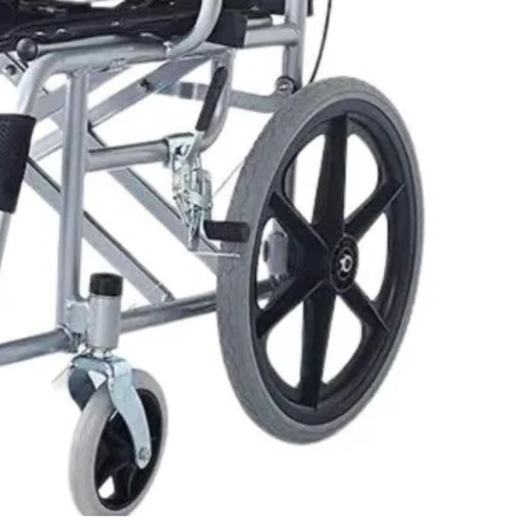 Fabricada con un resistente marco de acero al carbono, soporta hasta 220 libras y está equipada con ruedas traseras sólidas de 16 pulgadas que facilitan el desplazamiento. Para mayor seguridad, incluye frenos traseros y de mano, ofreciendo un control confiable en todo momento. Una opción funcional y duradera para quienes buscan calidad y seguridad en movilidad asistida.
