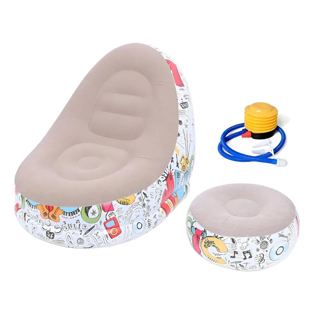 Sofá tumbona inflable ideal para relajarte en cualquier lugar, ya sea en casa, jardín o playa. Fabricado con material resistente y cómodo, permite un descanso completo gracias a su diseño ergonómico. Incluye bomba de aire manual incorporada, facilitando el inflado rápido y sencillo sin necesidad de accesorios adicionales.