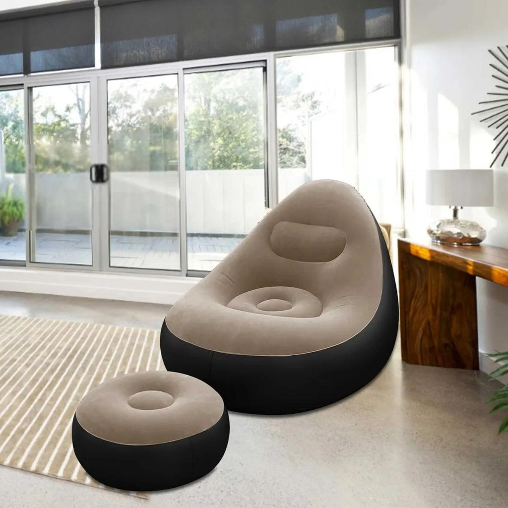 Sofá tumbona inflable ideal para relajarte en cualquier lugar, ya sea en casa, jardín o playa. Fabricado con material resistente y cómodo, permite un descanso completo gracias a su diseño ergonómico. Incluye bomba de aire manual incorporada, facilitando el inflado rápido y sencillo sin necesidad de accesorios adicionales.