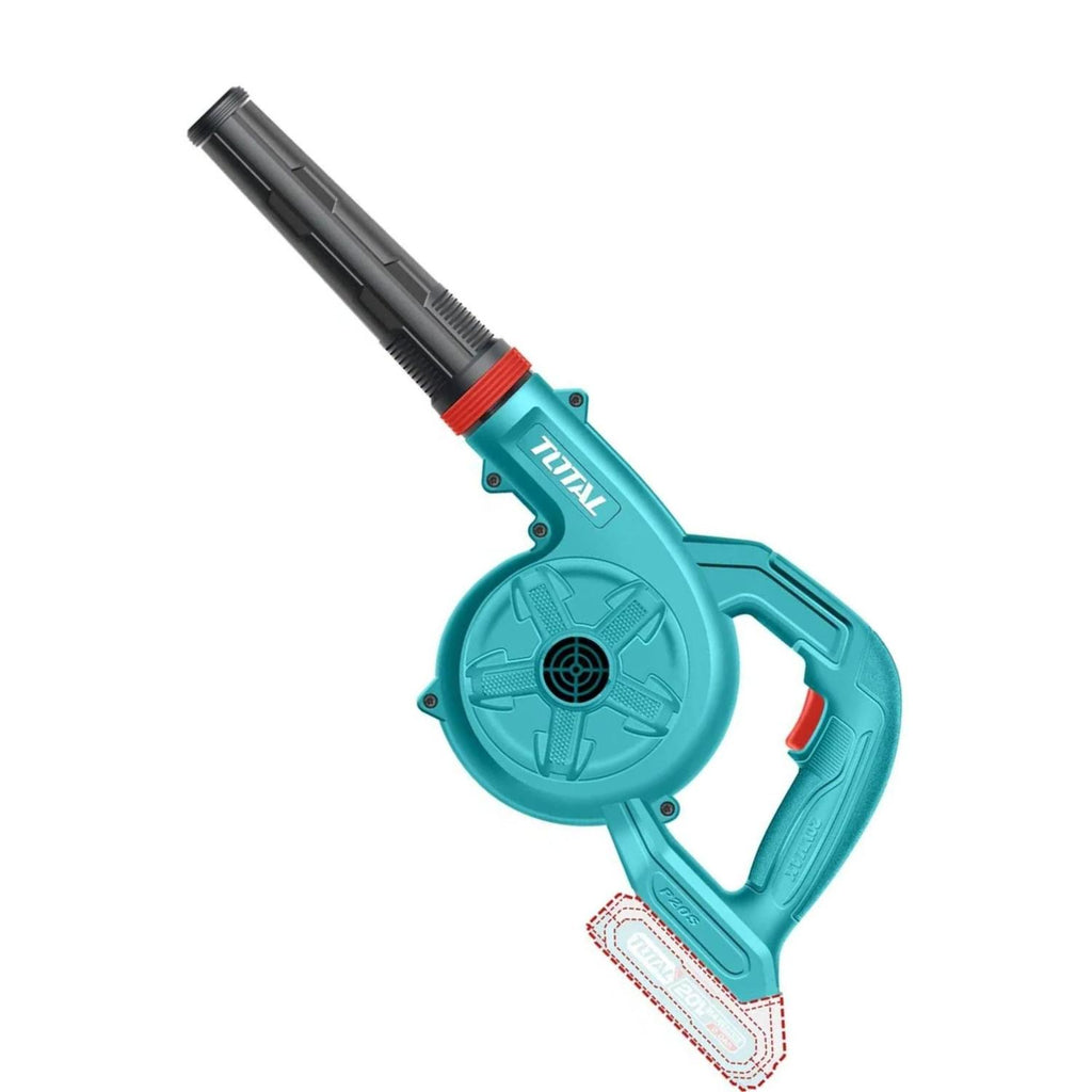 Ideal para eliminar polvo, hojas y residuos ligeros, este equipo se convierte en un aliado versátil para el hogar o el trabajo. Su estructura ligera y resistente lo hace fácil de manejar, mientras que su diseño moderno en color turquesa aporta un estilo distintivo. Funciona con baterías Total de 20V (no incluidas), lo que permite integrarlo fácilmente con otros equipos de la misma línea.