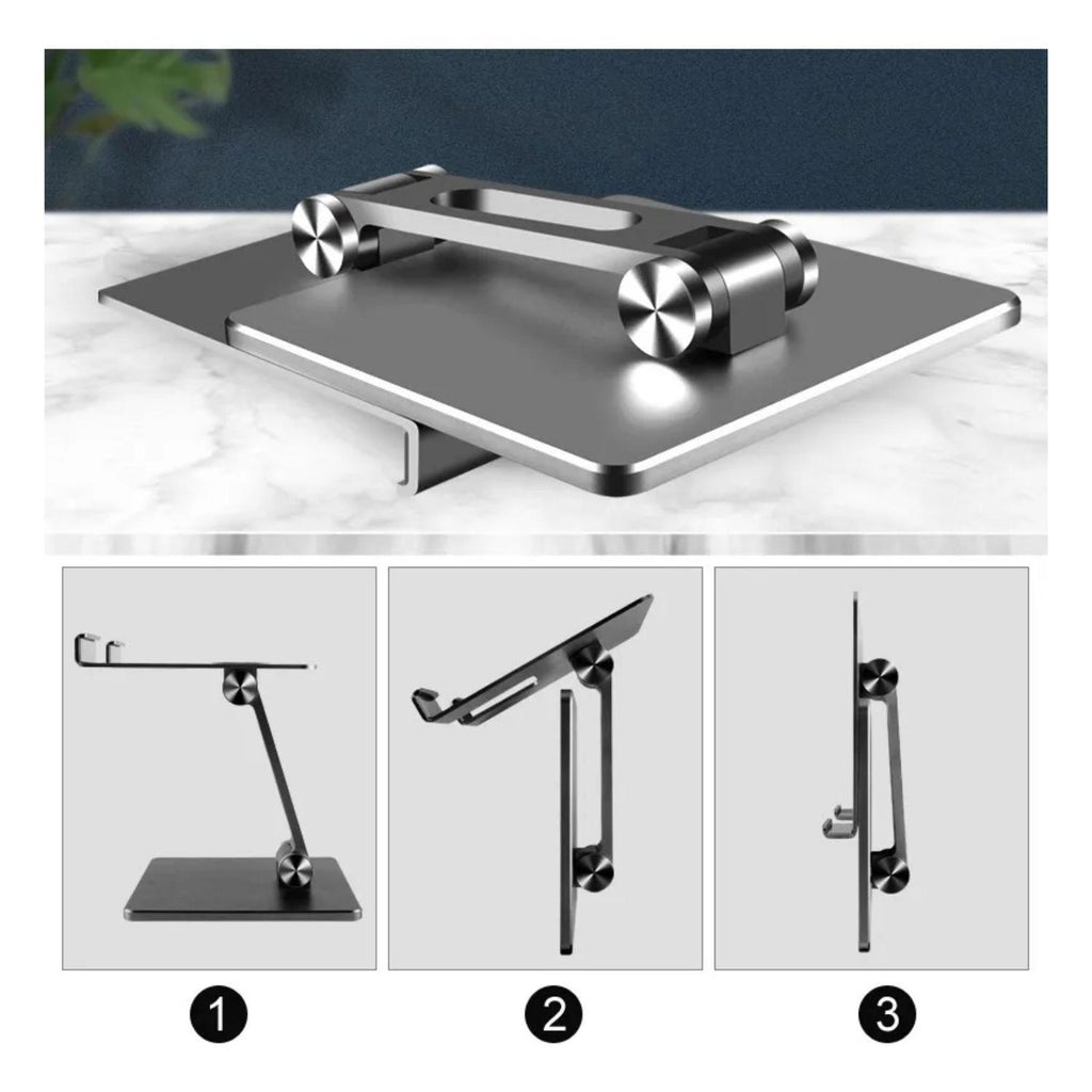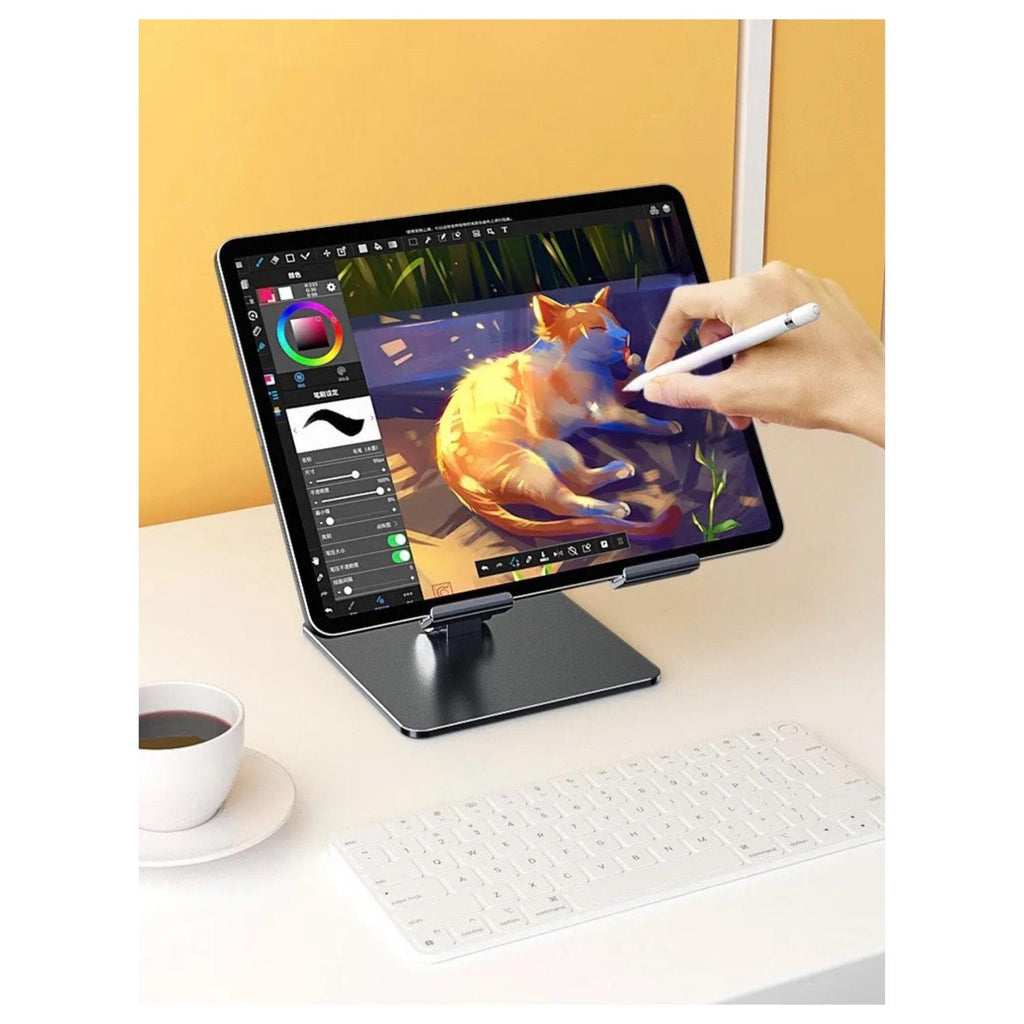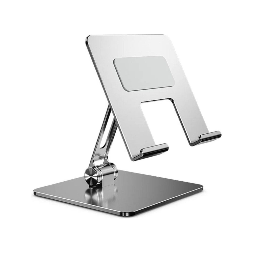 "¡Eleva tu experiencia con este soporte firme y versátil para celular y tablet! Diseñado en metal plegable, ofrece una estructura ultra estable y segura para tus dispositivos. Su altura y ángulo ajustables permiten personalizar la posición de uso, ideal para videollamadas, lectura o trabajo. Gracias a su base extra gruesa y los botones acolchados antideslizantes, garantiza una sujeción firme incluso para tablets grandes como un iPad.