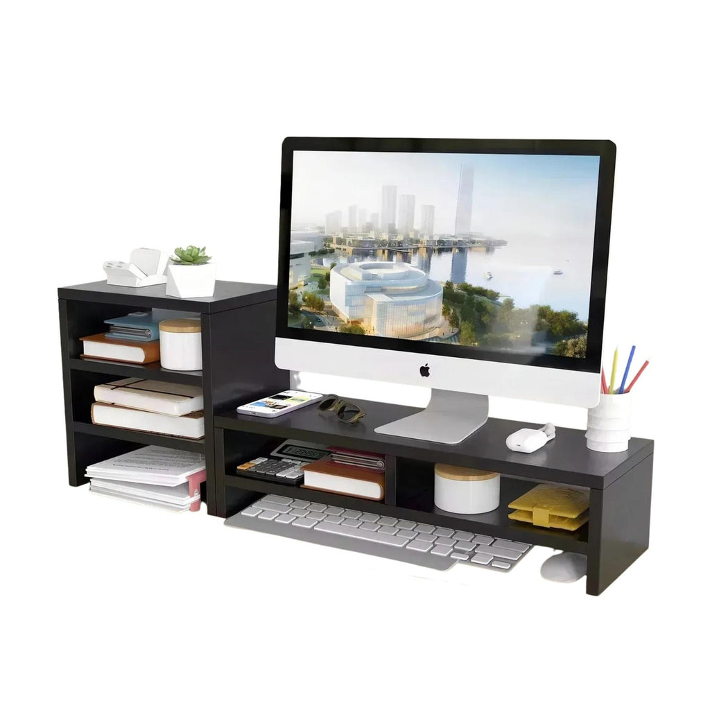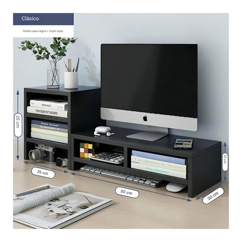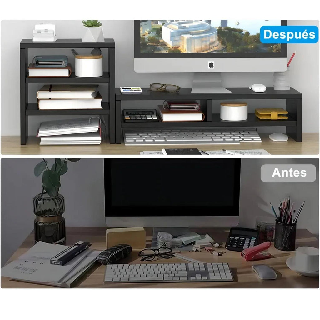 Organiza tu escritorio con este soporte de monitor de 3 niveles, ideal para almacenar accesorios de oficina o artículos personales. Su diseño permite mantener todo en orden y a la vista, optimizando tu espacio de trabajo.