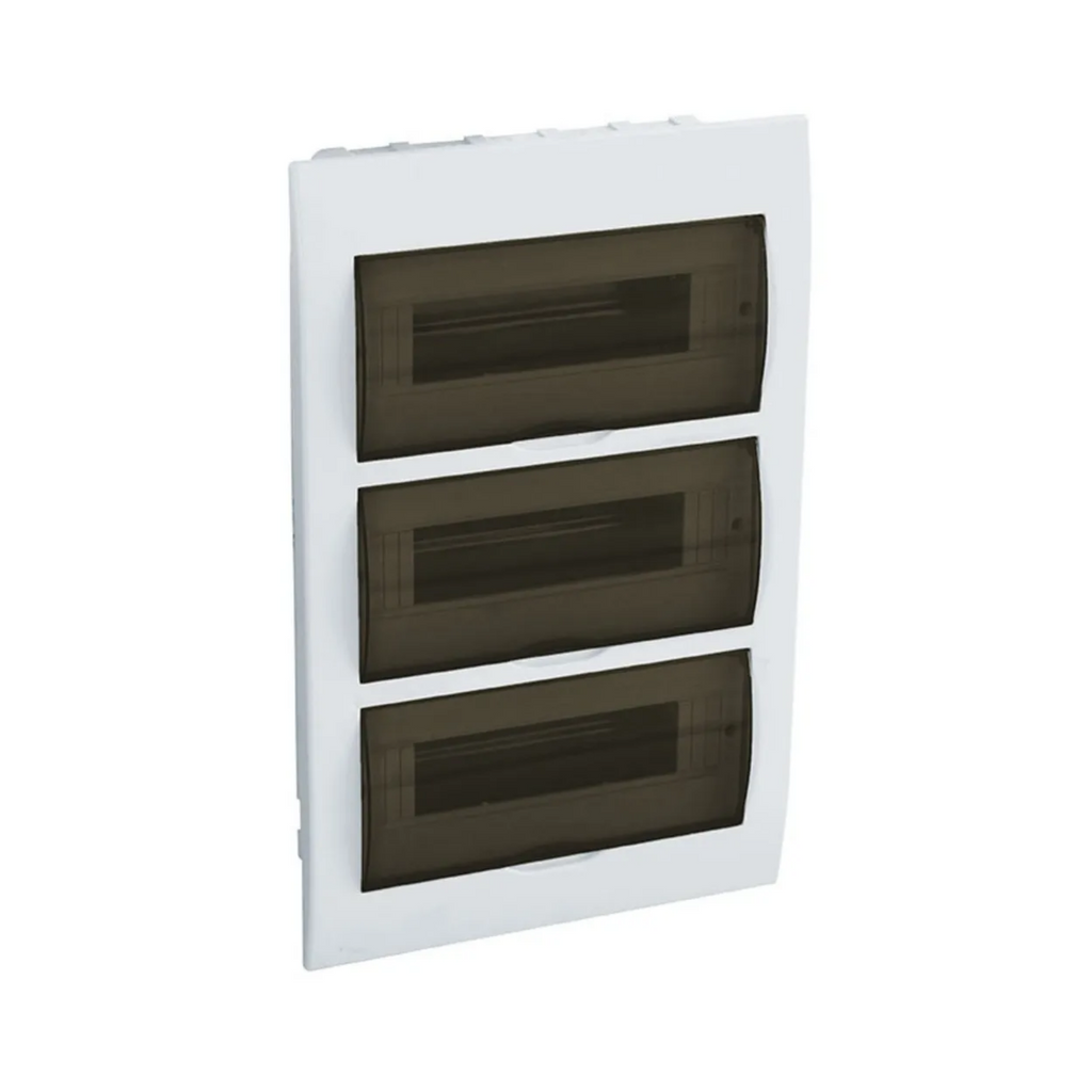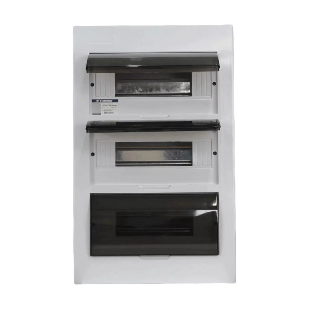 El tablero plástico embutido de 36 circuitos con puerta transparente es ideal para organizar y proteger instalaciones eléctricas en hogares, oficinas o industrias. Fabricado en PVC resistente, permite empotrarlo en muros y distribuye de manera segura los interruptores y cableado eléctrico, garantizando un funcionamiento confiable de los circuitos.