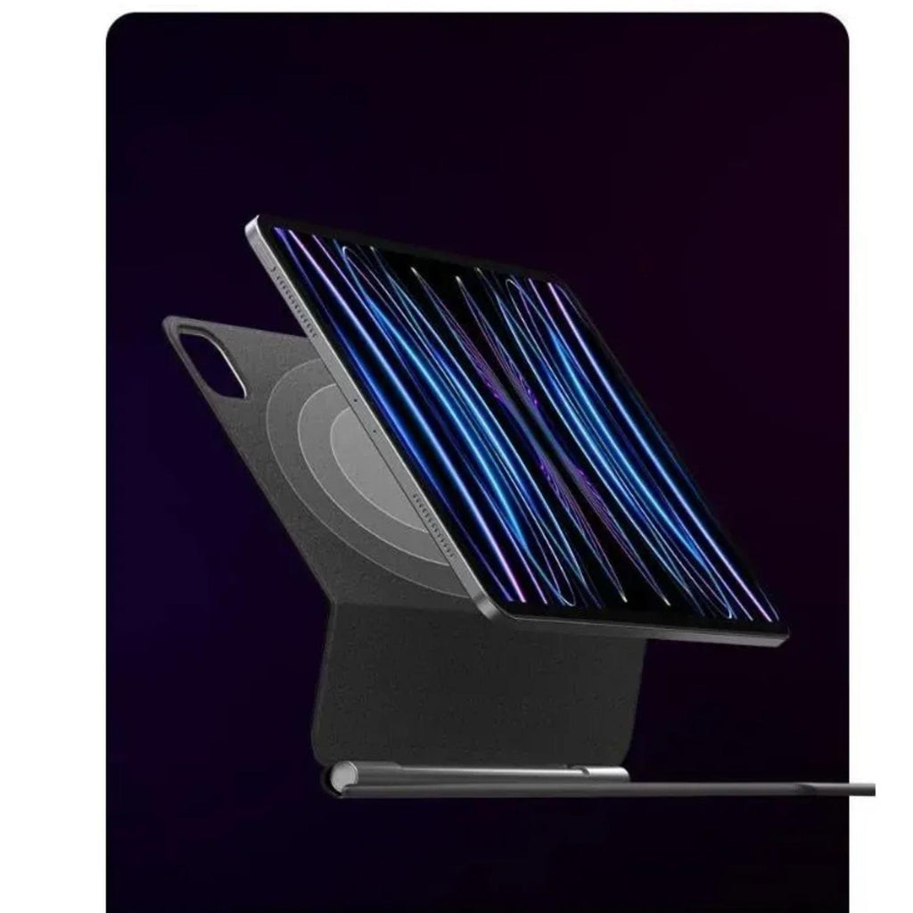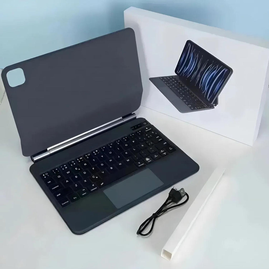 Teclado magnético compatible con iPad Pro 11 y iPad Air 4/5 de 10,9 pulgadas, diseñado para transformar tu tablet en una estación de trabajo portátil. Su trackpad integrado con gestos multi-touch, teclas silenciosas y retroiluminación ajustable permiten una experiencia cómoda, eficiente y versátil, ideal para trabajar, estudiar o crear en cualquier lugar.