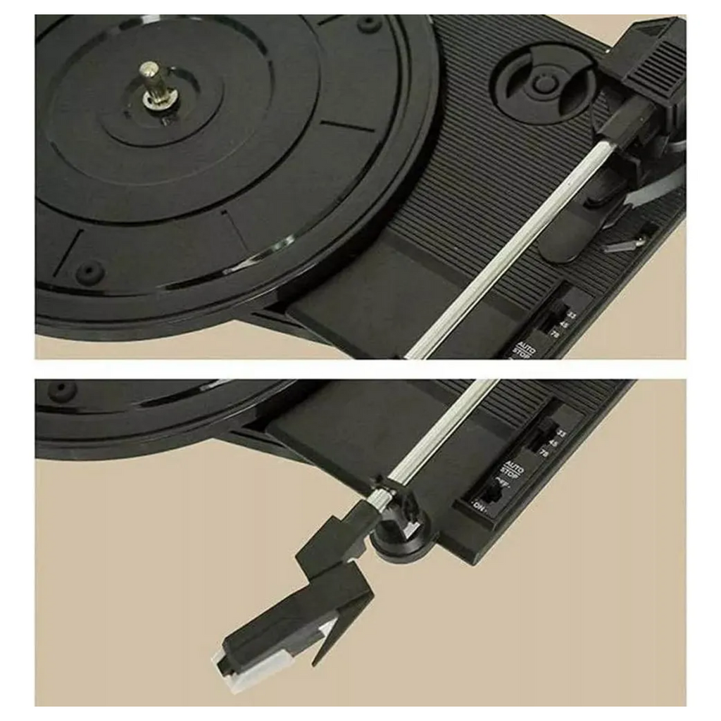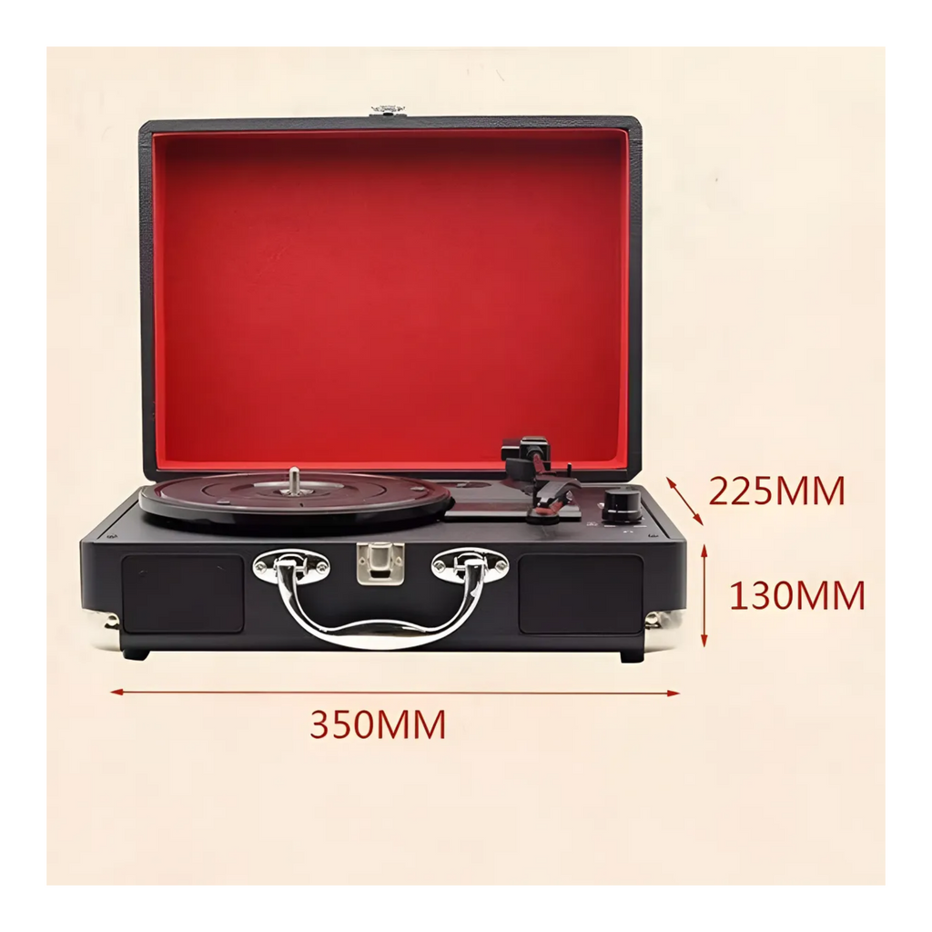 Equipado con conectividad Bluetooth 5.0, este tocadiscos permite enlazarlo fácilmente con teléfonos, tablets o computadoras, logrando un sonido envolvente a través de sus parlantes estéreo integrados de 6W de potencia. Sus refuerzos en las esquinas y el indicador LED de encendido complementan un equipo robusto, elegante y funcional, perfecto para quienes desean revivir la experiencia del vinilo con un toque moderno.
