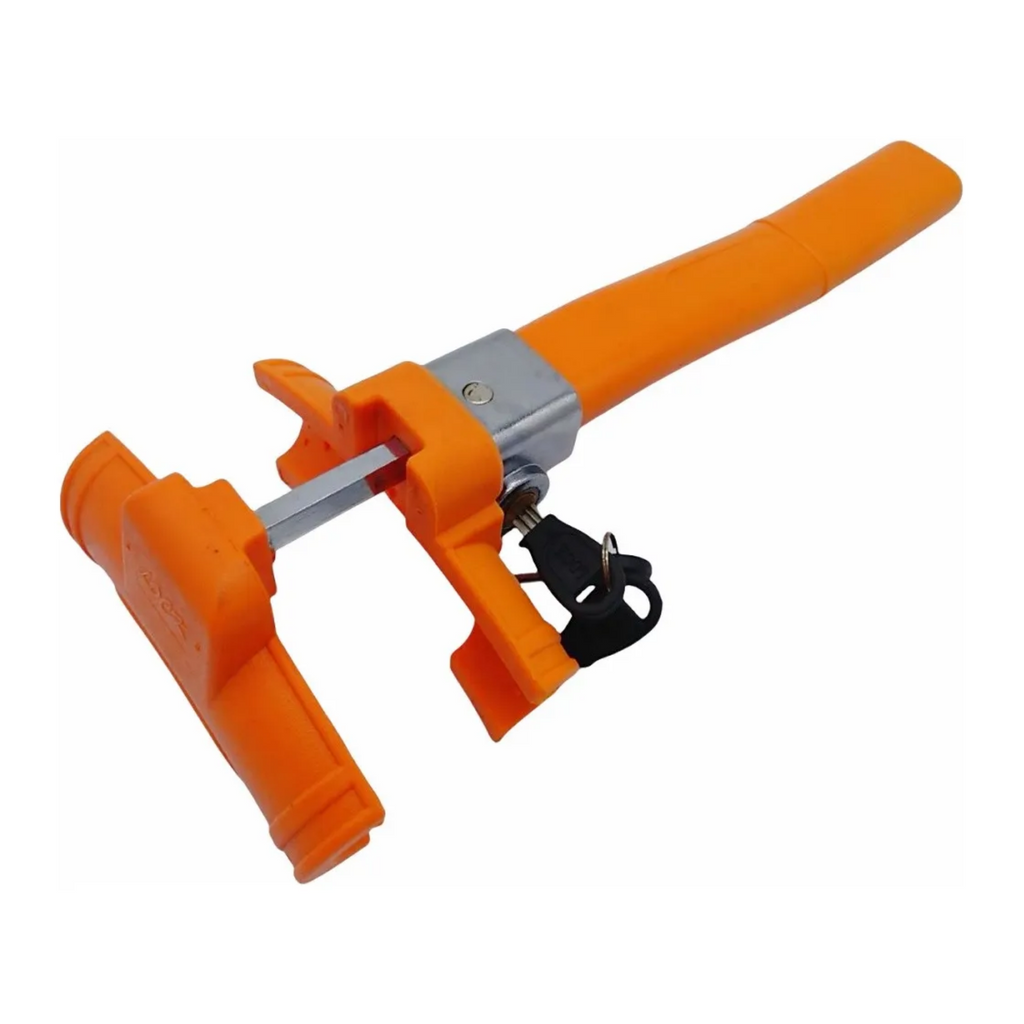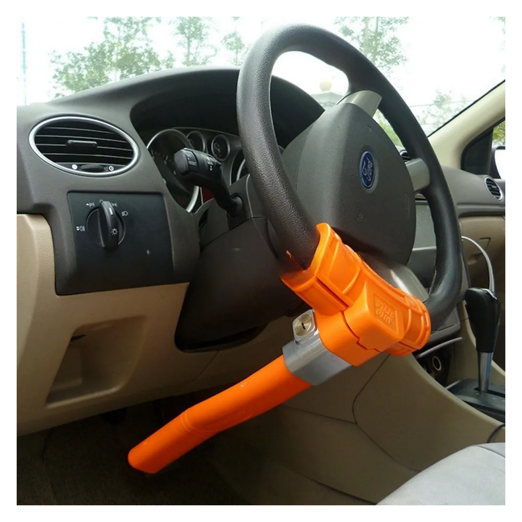Este trabavolante tipo T está diseñado para brindar máxima seguridad a tu vehículo, bloqueando completamente el volante y dificultando cualquier intento de robo. Su construcción reforzada con hierro y recubrimiento de PVC garantiza resistencia y durabilidad, mientras que su diseño universal permite su uso en todo tipo de autos y camionetas. El color naranja le da visibilidad para recordar su uso constante y evitar olvidos.