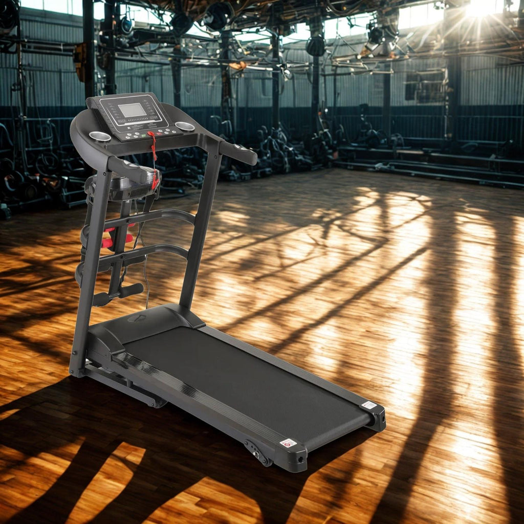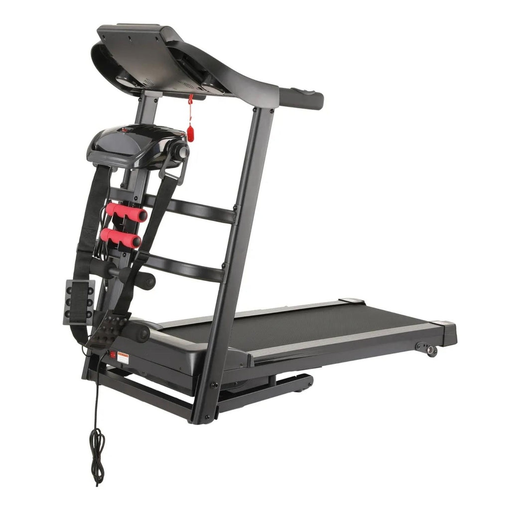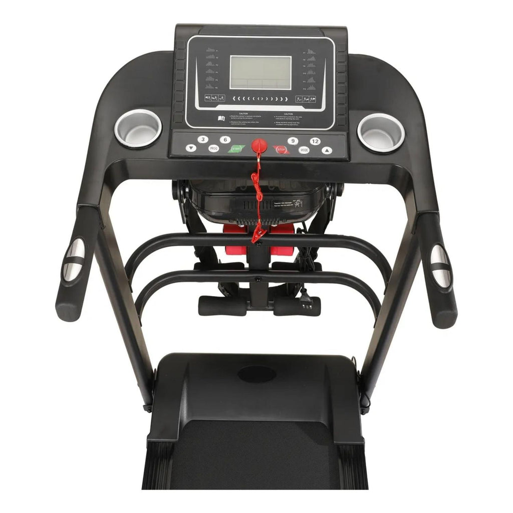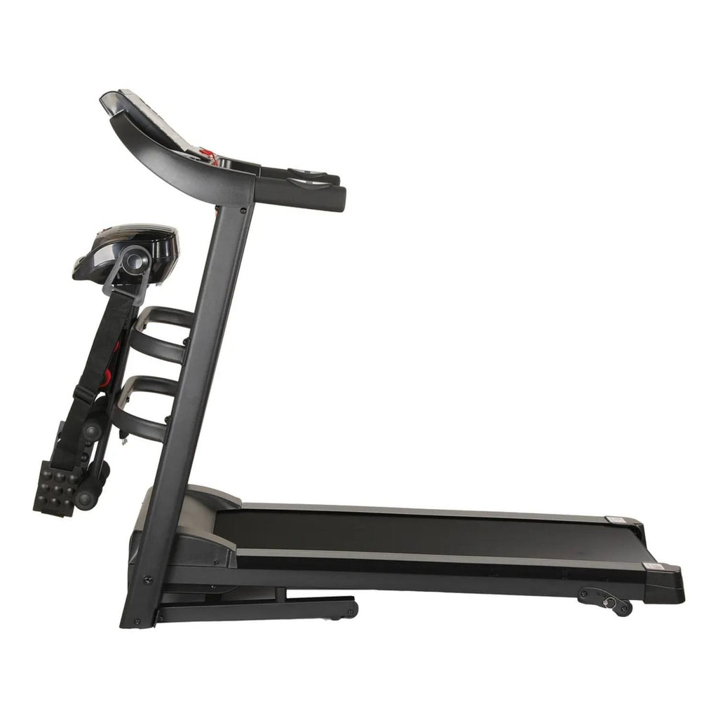 Su diseño multifuncional incluye masajeadores, mancuernas, soporte para iPad, altavoces integrados y entrada de audio de 3.5 mm. Además, cuenta con pantalla LCD que permite monitorear velocidad, tiempo, distancia, calorías y frecuencia cardíaca. El sistema de inclinación manual y su estructura plegable facilitan el almacenamiento sin ocupar mucho espacio. Incluye medidor de pulso, dispositivo magnético de seguridad y compartimentos para objetos personales.