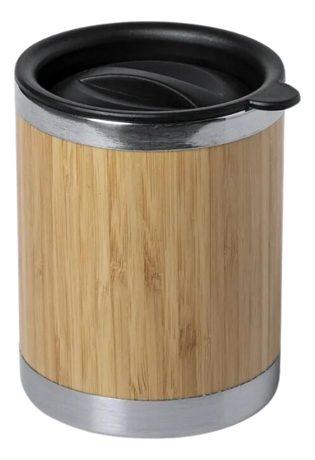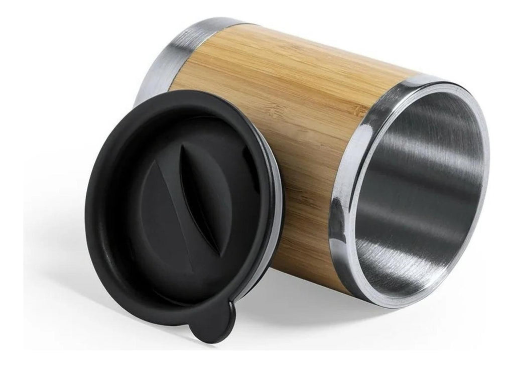 Vaso de 300 ml de capacidad con cuerpo de doble pared en bambú y acero inoxidable, diseñado para conservar la temperatura de tus bebidas por más tiempo, ya sean calientes o frías. Su construcción resistente y duradera combina estilo y funcionalidad, ofreciendo un producto práctico y elegante para el día a día. El diseño ergonómico permite un agarre cómodo y seguro, evitando que el vaso se resbale de tus manos.