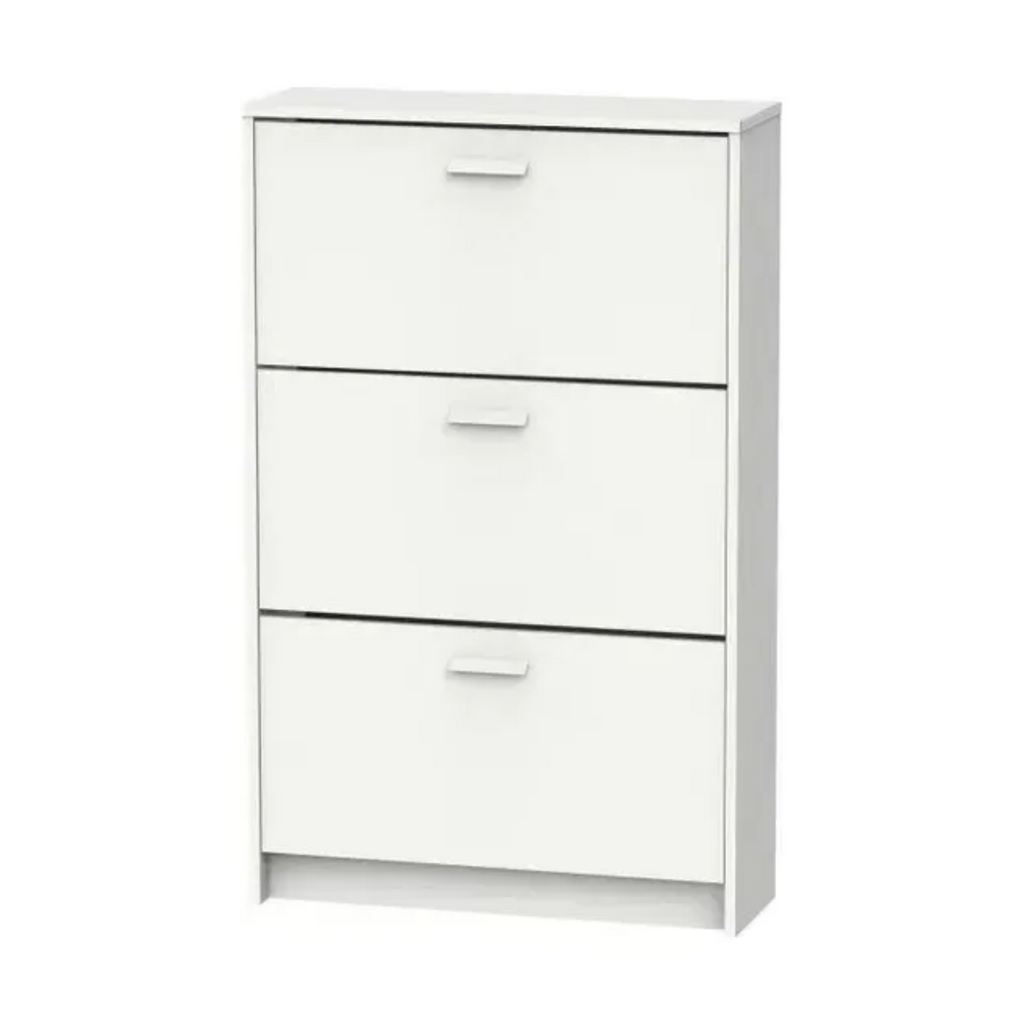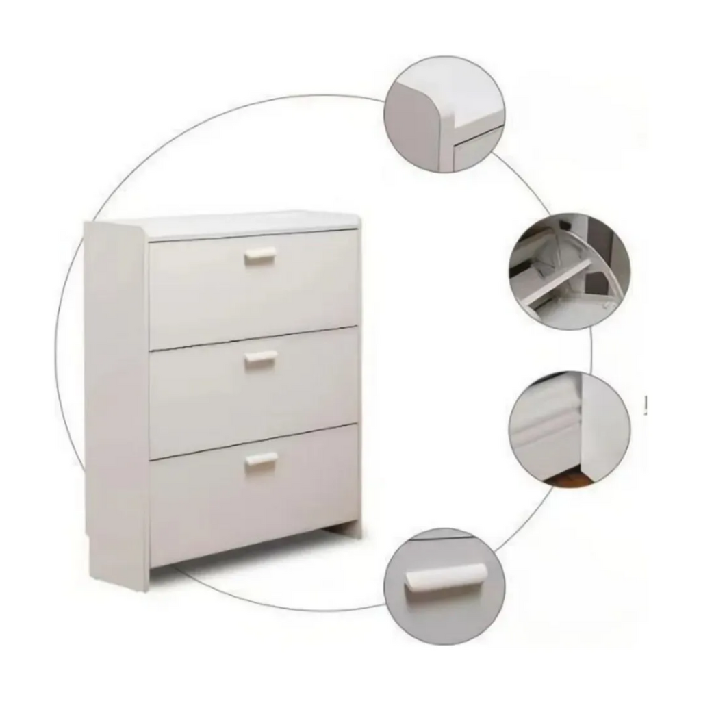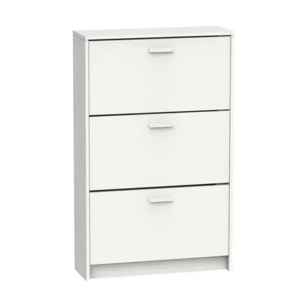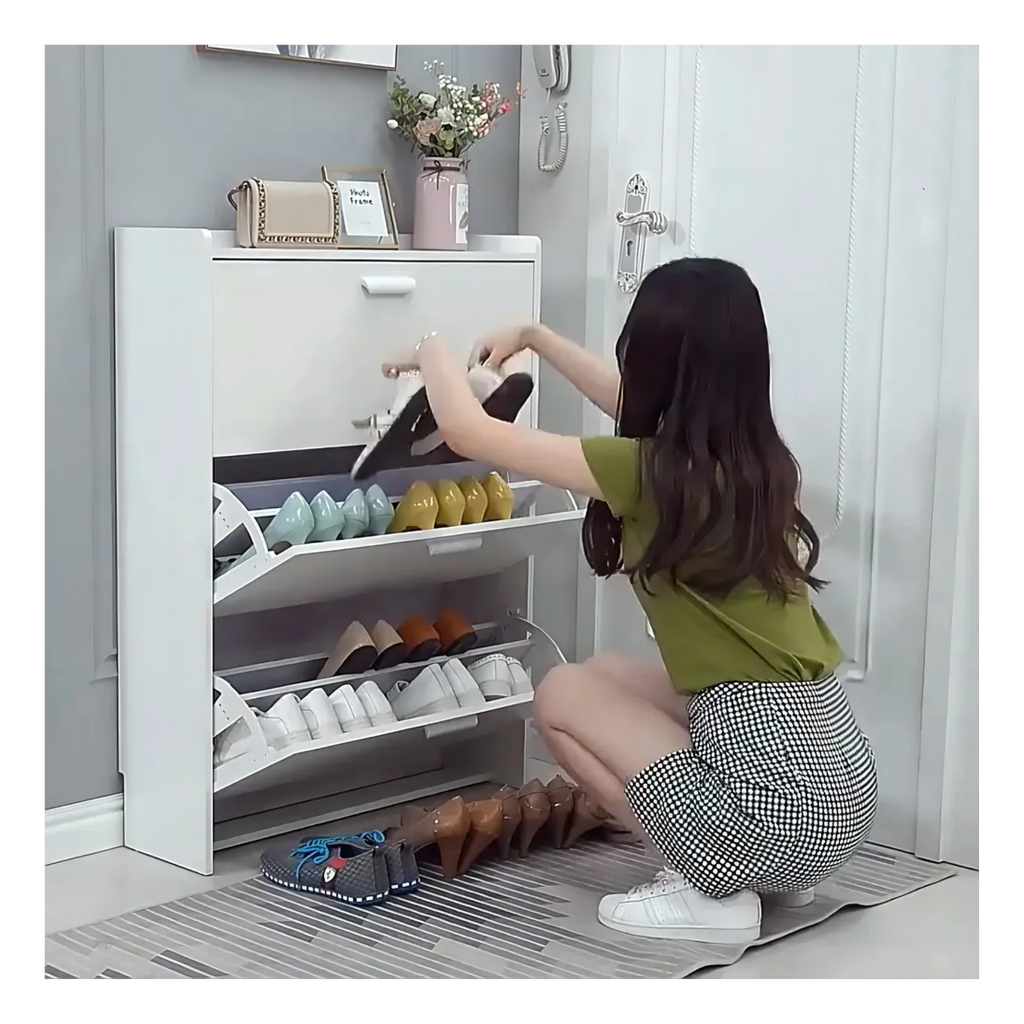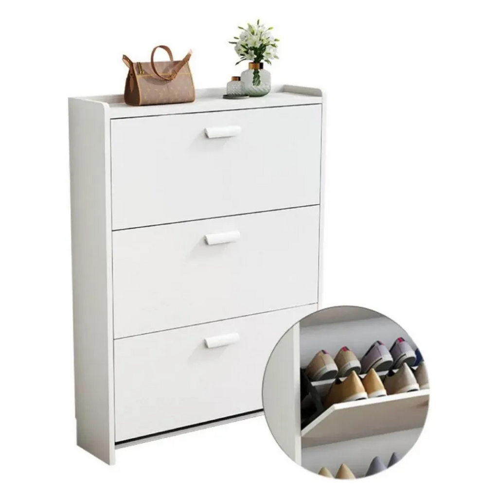 Zapatero estante organizador de 3 cajones, ideal para mantener tus zapatos ordenados y libres de polvo. Cada cajón mide 56x35x20 cm y puede alojar entre 4 y 6 pares de zapatos, proporcionando un total de tres niveles de almacenamiento. Su diseño elegante y discreto permite que se integre como un mueble más en tu habitación, sala u otro espacio, incluso pudiendo colocar un florero u otros elementos decorativos sobre él.